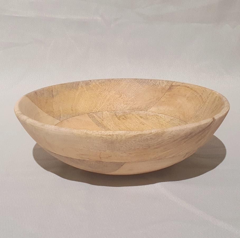 Średnica: 24cm Wysokość: 7,5cm Drewniana okrągła misa dekoracyjna na owoce z drewna mango Dekoracyjna głęboka misa na owoce wykonana z drewna mango. Misa zachowana w naturalnym wybarwieniu drewna. Idealna do kuchni czy tez jadalni na stół. Idealnie wpasuje się we wnętrze gdzie również znajdują się meble z drewna mango. Materiał: drewno mango Kolor: naturalne drewno mango