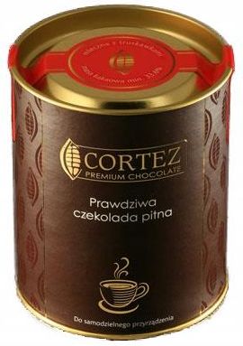 Prawdziwa Czekolada Pitna Mleczna z Truskawkami w Puszce z Polskiej Manufaktury Czekolady Cortez 200g Waga netto: 200g Skład: czekolada mleczna 97,5%, (cukier, masło kakaowe, mleko pełne w proszku, miazga kakaowa, emulgator: lecytyna sojowa, naturalny aromat waniliowy), truskawki liofilizowane 2,5%. Masa kakaowa w czekoladzie minimum 33,6%. Może zawierać mleko, orzechy, i zboża zawierające gluten. Produkt naturalny. Nie zawiera skrobi i innych zagęstników. Wartość odżywcza / 100g: wartość energetyczna 2331kJ/557kcal, tłuszcz 35g (w tym kwasy nasycone 21g), węglowodany 51g (w tym cukry 50g), błonnik 2,6g, białko 7g, sól 0,21g. Kraj pochodzenia: Polska