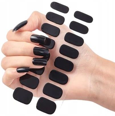 NAKLEJKI NA PAZNOKCIE ŻELOWE Samoprzylepne naklejki na paznokcie żelowe to szybki sposób na efektowny manicure w zaciszu domowym. Z powodzeniem mogą zastąpić tradycyjne lakiery do paznokci oraz hybrydowe. Dzięki nim stworzysz piękną stylizację w kilka chwil, bez obawy o zalane skórki. Łatwe w aplikacji. Naklejki na paznokcie w kolorze czarnym prezentują się bardzo elegancko. Stylizacja w kolorze czarnym przyciąga uwagę, jest gustowna, zmysłowa i wytworna. Manicure w kolorze czarnym jest ponadczasowy i luksusowy. APLIKACJA nadaj pożądany kształt paznokciom, usuń skórki, usuń pył i odtłuść płytkę, poczekaj aż płytka wyschnie, wybierz odpowiedni rozmiar naklejki pasujący do naturalnej płytki, usuń z naklejki folię zabezpieczającą odklej naklejkę, przytrzymując jej prostokątny koniec, ostrożnie przyłóż zaokrąglony koniec do nasady paznokcia, po nałożeniu naklejki na paznokieć zaczynając od nasady wygładź ją gumowym kopytkiem lub drewnianym patyczkiem, uważając, aby nie powstały zagięcia i pęcherzyki. Szczególną uwagę należy zwrócić na boki i wolny brzeg paznokcia, nadmiar naklejki przy wolnym brzegu paznokcia należy spiłować pilniczkiem, kierując go ruchem z góry na dół, zalecamy zabezpieczenie naklejki topem i utwardzenie go w lampie UV/LED. USUWANIE paznokcie zamocz w ciepłej wodzie przez 3-5min delikatnie podważ naklejkę drewnianym patyczkiem, zaczynając od nasady paznokcia, pozostałości naklejki usuń wacikiem nasączonym acetonem. Arkusz zawiera 16 naklejek w 8 rożnych rozmiarach. UWAGA!! NIE SĄ TO NAKLEJKI UTWARDZANE W LAMPIE.