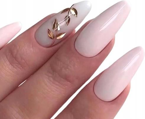 Deni Carte Paznokcie Sztuczne Tipsy Migdał Róż Nude Złoty Liść Samoprzylepne 24szt. Bychawa