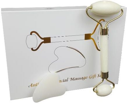 Deni Carte Zestaw Masażer + Gua Sha Biały Jadeit 2Szt. Bychawa