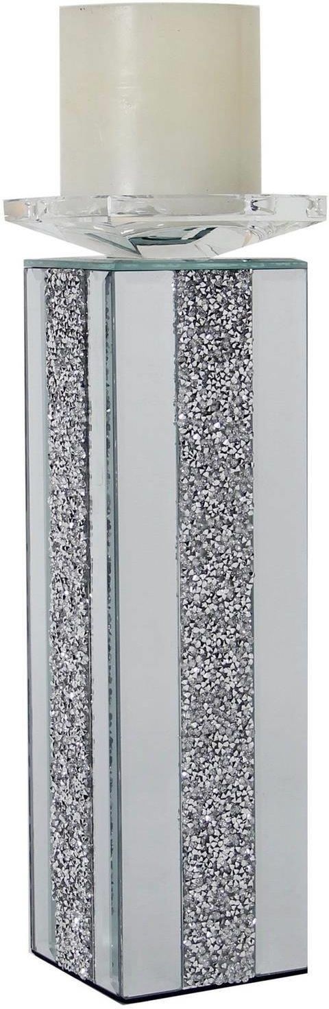 Kolumnowy świecznik o kwadratowej podstawie z linii GLAMOUR. Zewnętrzna część wykonana z lustrzanej tafli, wykończona rynienką z mieniącymi sie kryształkami przykrytymi delikatną szybką. Minimalistyczne wykończenie i prosta forma przy jednocześnie bogatym zdobieniu sprawią, że znajdzie miejsce w każdym wnętrzu. Jednocześnie stanowi doskonały pomysł na prezent.