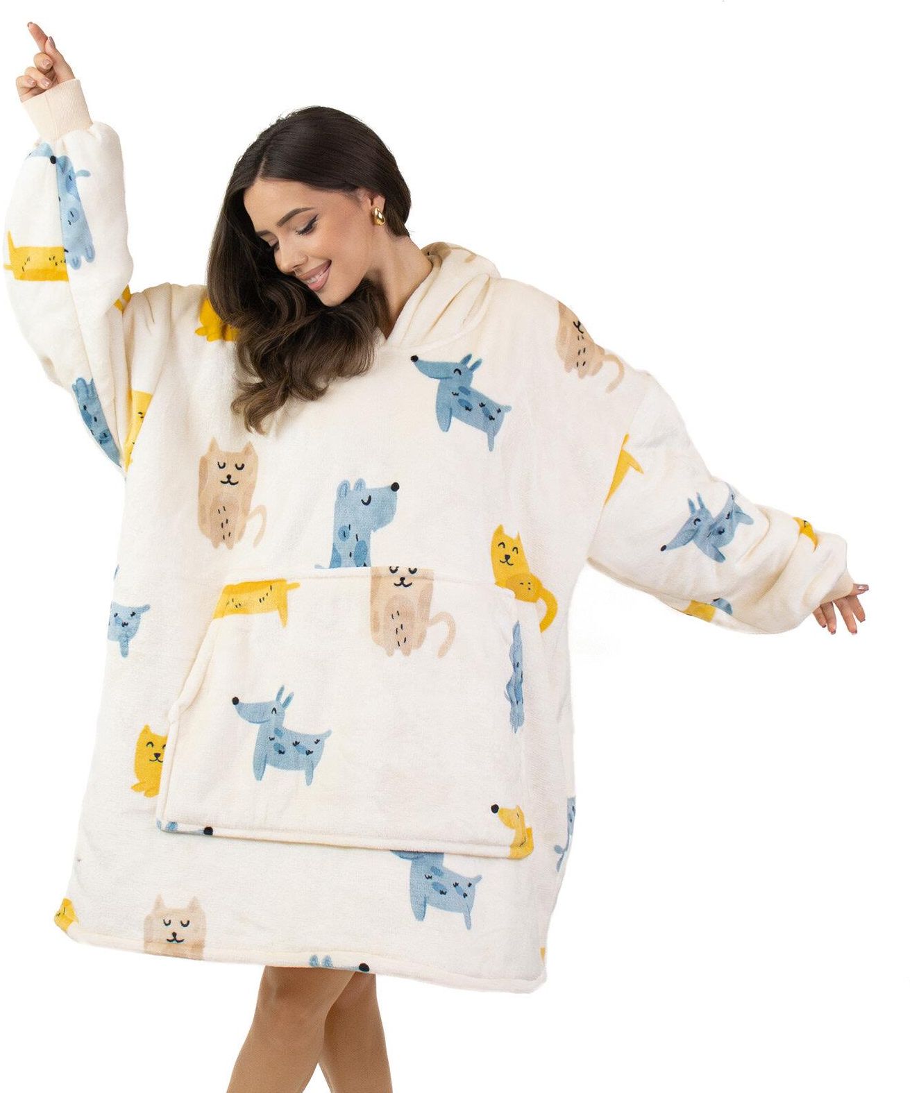 KOCOBLUZA KOC BLUZA CIEPŁA 2w1 GRUBA XXL FUTRZAK POLAR z kapturem OVERSIZE Bychawa