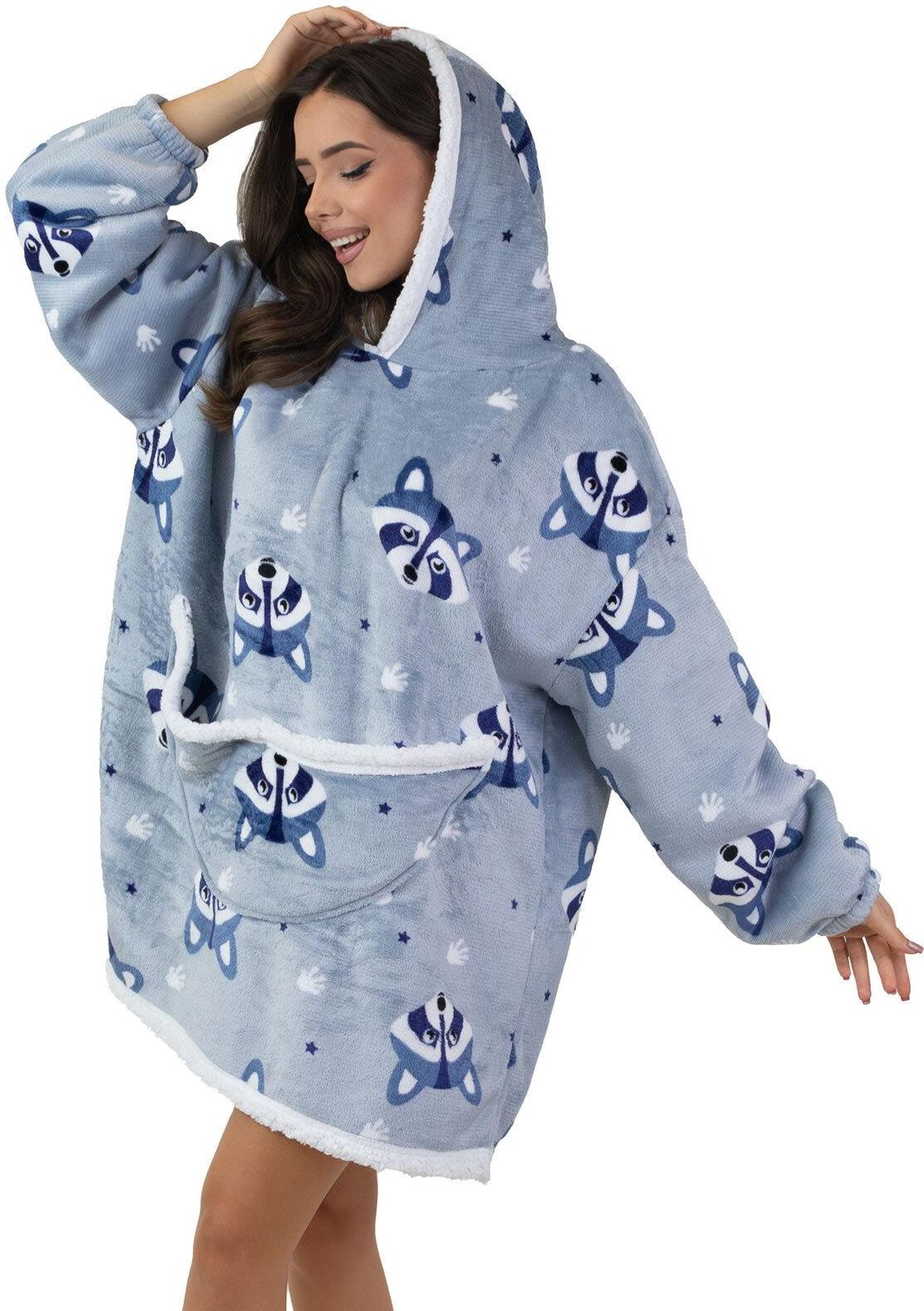 KOCOBLUZA KOC BLUZA CIEPŁA 2w1 GRUBA XXL FUTRZAK POLAR z kapturem OVERSIZE Bychawa