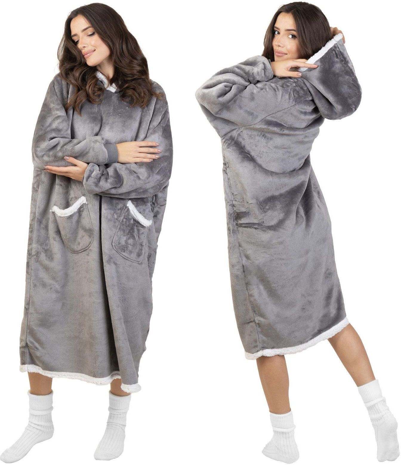 KOCOBLUZA KOC BLUZA CIEPŁA 2w1 GRUBA XXL FUTRZAK POLAR z kapturem OVERSIZE Bychawa