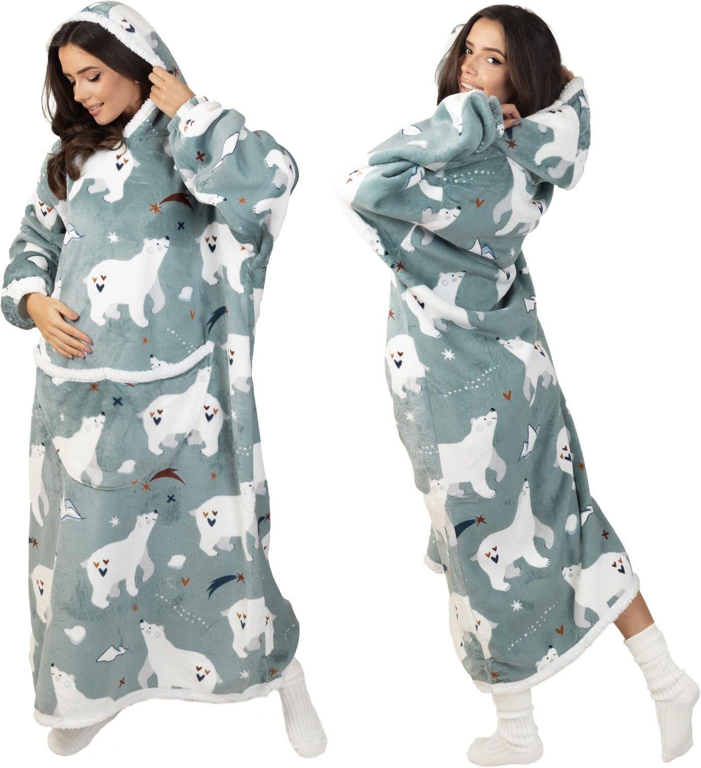 KOCOBLUZA KOC BLUZA CIEPŁA 2w1 GRUBA XXL FUTRZAK POLAR z kapturem OVERSIZE Bychawa