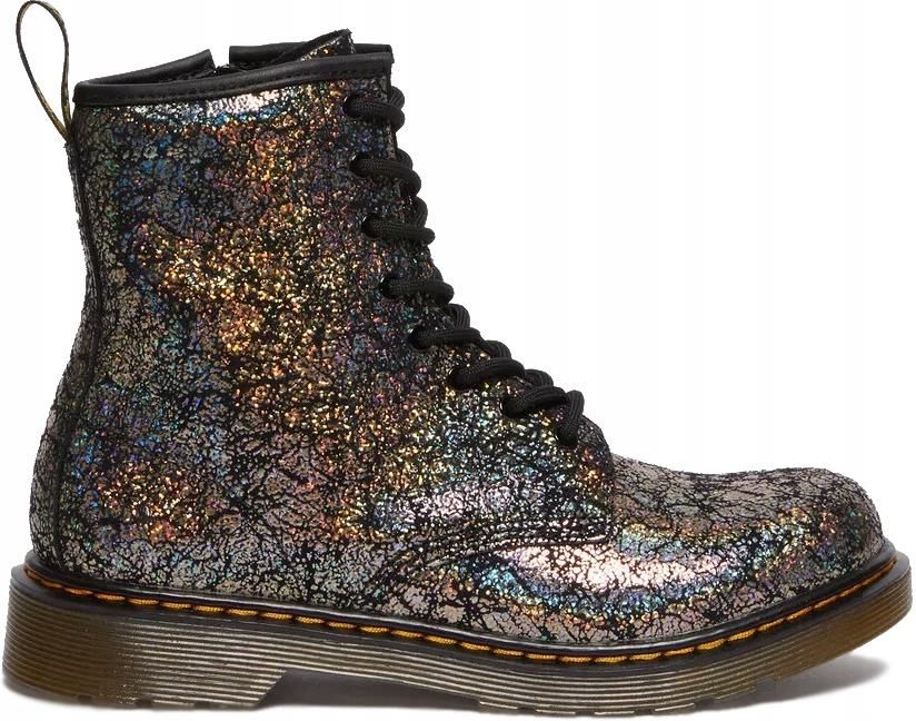 BUTY DAMSKIE DR. MARTENS r. 38 wkładka 25 cm Disco Crinkle to nasza najnowsza metaliczna skóra, która łączy blask brokatu z wyjątkową trwałością, idealna dla każdej kobiety. Powlekane i oparte na lśniącej, połyskującej bazie, te wyjątowe botki wyposażone są w czarne oczka i sznurowadła, a także …