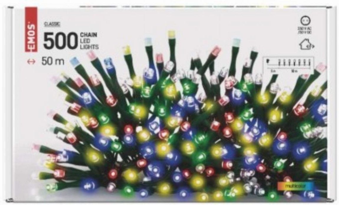 Kolorowe światełka na choinkę IP44 50m EMOS Lampki choinkowe D4AM06 , mierzą aż50m długości , dodatkowo wyposażone są w 5 metrowy przewód zasilający. Wbudowanych diod LED jest 500szt i są w odstępie 10cm. Prezentowane światełka to propozycją od marki EMOS, nadając się do dekoracji drzewka lub …