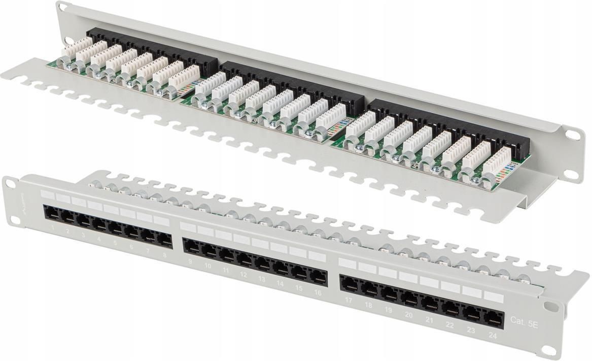 PATCH PANEL 24 port kat.5E cat.5e UTP szary RACK Patchpanel 19" 1U LSA 24x Nowa generacja patch paneli Lanberg Patch panel Lanberg do szaf RACK 19" to rozwiązanie zaprojektowane z myślą o profesjonalnym okablowaniu sieciowym. Dzięki 24 portom RJ-45 kategorii 5E UTP oraz uniwersalnym złączom IDC/LSA zgodnym z T568A/B, sprawdzi się w różnych środowiskach – od małych serwerowni po rozbudowane centra danych. Dodatkowa, zintegrowana półka oraz metalowe uchwyty kablowe pozwalają na wygodną i szybą organizację przewodów, co przekłada się na porządek w szafie RACK i łatwe zarządzanie okablowaniem. Wszystkie porty zostały wyraźnie ponumerowane, co ułatwia identyfikację poszczególnych linii, a dedykowane miejsca na opisy pomagają w jeszcze bardziej intuicyjnym zarządzaniu siecią. Ta strona dotyczy panelu w wersji Kat.5E w kolorze szarym RAL7035. Udoskonalone rozwiązania dla profesjonalistów Jednym z najistotniejszych atutów nowego patch panelu jest bogaty zestaw akcesoriów – w komplecie znajdują się opaski zaciskowe i śruby montażowe M6, co przekłada się na szybką i bezproblemową instalację. Wbudowane uchwyty kablowe zapewniają solidne mocowanie przewodów, dzięki czemu nawet przy dużym obciążeniu masz pewność zachowania porządku i stabilności w szafie. To niezastąpione rozwiązanie dla integratorów systemów sieciowych, instalatorów IT i elektryków, a także administratorów sieci w korporacjach czy firmach z branży telekomunikacyjnej. Patch panel Lanberg to inwestycja w trwałe, wydajne i profesjonalne okablowanie, które spełni oczekiwania nawet najbardziej wymagających użytkowników. Specyfikacja Ilość portów: 24 Typ złącza: Wyposażone Rozmiar: 19" Wysokość teleinformatyczna: 1 U Kategoria teleinformatyczna: Kat. 5/5e Ekranowanie: Nie Uziemienie: Nie Przystosowane do przewodów: 20-26 AWG Wyposażony w złącza: Tak Trwałość złącza szczelinowego: 200 cykli Typ zarabiania: IDC/LSA Materiał: Stal Standard: T568A, T568B Oznaczenia portów w postaci ponumerowanych pól: Tak Długość złącza: 21.5 mm Częstotliwość pracy: 0 - 100 MHz Impedancja: 75 Ohm Strata wtrąceniowa: < 0.2 dB Kolor palety RAL: RAL7035 Kolor: Szary Długość: 98 mm Szerokość: 482.6 mm Wysokość: 44.45 mm Waga: 0.9 kg Zalecana temperatura otoczenia: -10 - 60 °C Akcesoria w zestawie: Zintegrowana półka kablowa, Śruby M6, Organizer okablowania