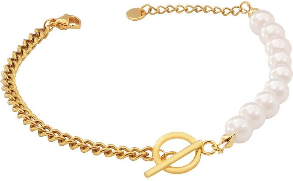 MISS GLOW BRANSOLETKA DAMSKA ZŁOTA ŁAŃCUCH PERŁY STAL Bychawa