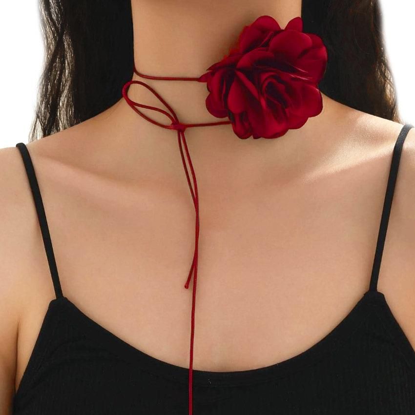Naszyjnik CHOKER ozdobny KWIAT na szyję róża na rzemyku elegancki czerwony - 41971 Miss Glow . Szczegóły ID Produktu: 41971 Marka: Miss Glow