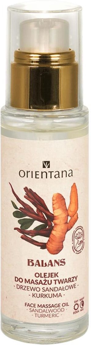 Orientana Balans Zanurz się w ajurwedyjskim rytuale pielęgnacji, który ukocha Twoją skórę oraz zmysły. Orientana Olejek do masażu twarzy Drzewo Sandałowe i Kurkuma to 100% naturalny kosmetyk inspirowany tradycyjną recepturą prosto z Azji. Otula skórę regenerującym dotykiem, łagodzi podrażnienia, a także wspomaga detoksykację, a przy tym koi zapachem drzewa sandałowego, tworząc idealne tło dla wieczornego relaksu. Idealny do masażu Gua Sha, Kobido, a także jako intensywne serum na noc.