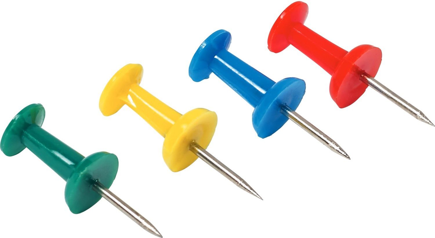 Pinezki beczułka kolor mix 12szt 12szt Kolorowe pinezki typu beczułka to zestaw 12 sztuk uniwersalnych akcesoriów biurowych o charakterystycznym, ergonomicznym kształcie ułatwiającym chwytanie. Wykonane z trwałego tworzywa sztucznego i ostrej stali, idealnie nadają się do mocowania notatek, zdjęć czy map na tablicach korkowych oraz styropianowych. Mix intensywnych kolorów pozwala na estetyczne porządkowanie informacji i szybkie wyróżnienie najważniejszych zapisków.