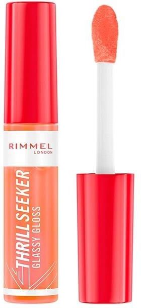 Błyszczyk do ust z aplikatorem XXL Rimmel Thrill Seeker Glassy Glos zapewnia efekt soczystych, lśniących ust o owocowym zapachu i smaku