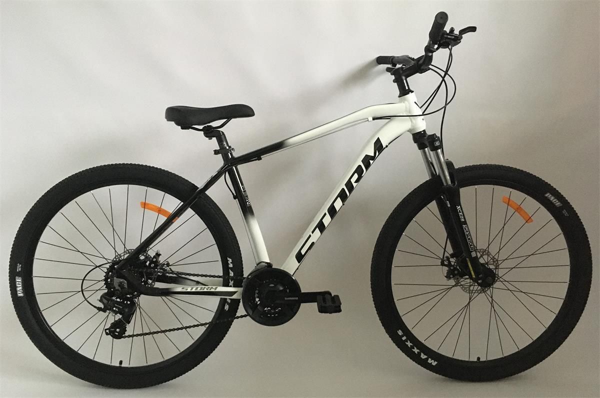 STORM SHARK 29 1.0 MAN biały/czarny 21 STORM SHARK 29 1.0 MAN Rozmiar ramy: 21" Biegi: 21 Osprzęt: SHIMANO TOURNEY RD TY300D Hamulce: TARCZOWE MECHANICZNE Widelec: AMORTYZOWANY SUNTOUR XCE-DS. 100 mm W zależności od dostawy na ramie mogą występować oznaczenia (-V,1.0, 2.0, 3.0, 4.0, 5.0, 6.0, 7.0) SPECYFIKACJA Rozmiar ramy 17, 19, 21 Rozmiar kół 29 Ilość biegów 21 Rama ALUMINIUM T6101 HYDROFORMOWANA Widelec AMORTYZOWANY SUNTOUR XCE-DS. 100 mm Przerzutka przednia SHIMANO TOURNEY FD-TY500 Przerzutka tylnia SHIMANO TOURNEY RD TY300D Piasta przód ALUMINIOWE SF-A210 Piasta tył ALUMINIOWE SF-A210 Hamulec przód TARCZOWE MECHANICZNE, ALHONGA Hamulec tył TARCZOWE MECHANICZNE, ALHONGA Manetki ST-EF500 Kaseta wolnobieg WOLNOBIEG SHIMANO MF-TZ500 7 RZĘDOWY(11-34T) Obręcz STORM ALUMINIOWA, DWUKOMOROWA, WZMACNIANA Opona MAXXIS PACE 29X2,1 Łańcuch KMC HV-408 Pedały PF-830A Korba SHIMANO TY301 (42-34-24) Suport cartdrige/ łożyska maszynowe/ Wspornik siodła ALUMINIOWY UNO 30,9 mm Siodło STORM Wspornik kierownicy ALUMINIOWY UNO AHEAD Kierownica STORM ALUMINIOWA 720 MM Chwyty HERRMANS