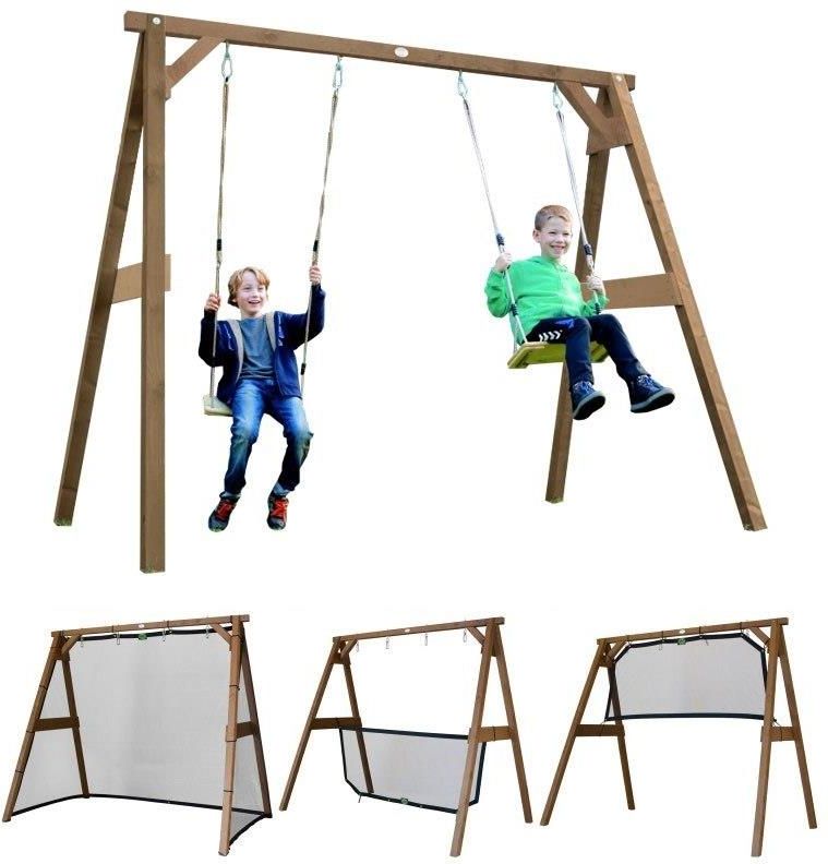 Family Fun zestaw sportowy4w1 drewniany zaprojektowany dla dzieci od lat 3 firmę Axi. Wielofunkcyjny plac zabaw szybko może zostać przekształcony z bramki piłkarskiej w plac zabaw z dwoma huśtawkami a następnie mi3ejsce do gry w tenisa lub siatkówkę. Możliwości tego drewnianego zestawu nie mają końca. Ostrzeżenie. Wyłącznie do użytku domowego. Ryzyko upadku. Nie należy zostawiać bez nadzoru dzieci w wieku poniżej 36 miesięcy, siedzących lub bujających się.