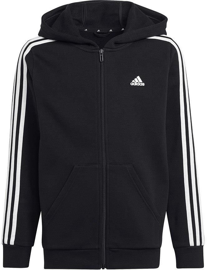 Bluza adidas 3 Stripes FL Full-Zip Hoody Jr HR6331 Właściwości: Dziecięca bluza rozpinana z kapturem Bez regulacji pod szyją Wyszywane małe logo na piersi Krój lużny dwie przednie kieszenie Firmowe paski naszyte wzdłuż rękawów Materiał: 77% Bawełna 23% poliester Kolor: czarny