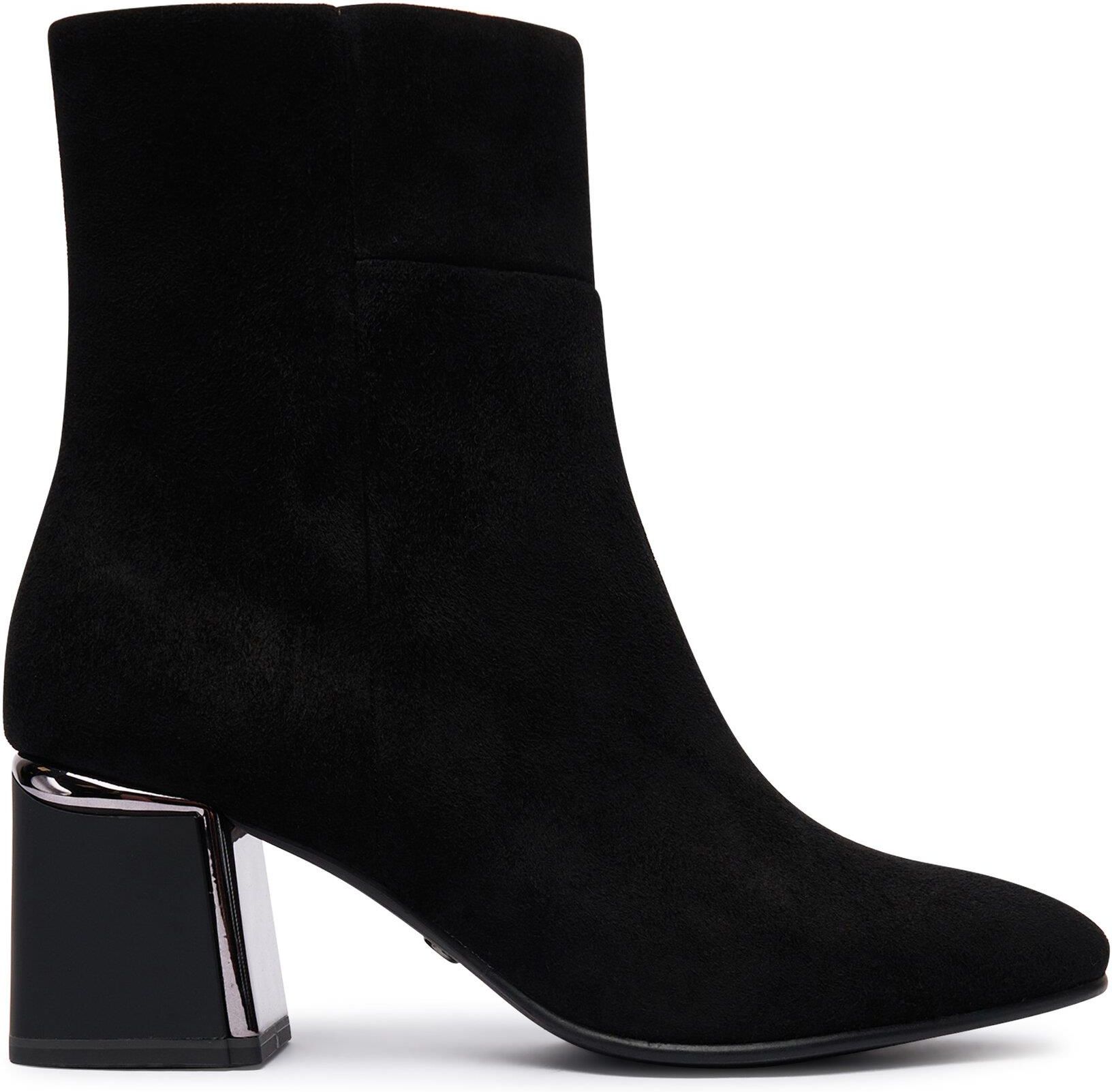 Botki Tamaris to eleganckie i stylowe obuwie, które łączy w sobie klasykę z nowoczesnością. Wykonane z najwyższej jakości skóry naturalnej, te botki oferują nie tylko trwałość, ale także luksusowy wygląd, który podkreśli każdą stylizację. Ich klasyczny czarny kolor czyni je uniwersalnym dodatkiem do garderoby, idealnym na różne okazje. Wnętrze i wkładka botków wykonane są z miękkiego materiału tekstylnego, co zapewnia wygodę i komfort użytkowania. Tekstylne wnętrze gwarantuje odpowiednią cyrkulację powietrza, co jest kluczowe dla komfortu stóp podczas codziennego noszenia. Dzięki temu, Twoje stopy pozostaną świeże i suche przez cały dzień. Botki Tamaris charakteryzują się eleganckim designem z subtelnym zamkiem błyskawicznym, który ułatwia ich zakładanie i zdejmowanie. Stabilny obcas dodaje im wyrafinowania, a jednocześnie zapewnia wygodę i pewność kroku na każdej nawierzchni. Te botki to doskonały wybór dla osób, które cenią sobie elegancję połączoną z wygodą. Dzięki starannemu wykonaniu i zastosowaniu najwyższej jakości materiałów, botki Tamaris oferują nie tylko wyjątkowy wygląd, ale także niezrównaną trwałość i komfort użytkowania. Model: 1-25341-45/004 Kolor: Black suede Cholewka: Skóra naturalna zamszowa Wnętrze: Materiał tekstylny Wkładka: Materiał tekstylny Podeszwa: Obcas słupkowy Wysokość całkowita buta: 22 cm Wysokość obcasa: 6,5 cm Rodzaj zapięcia: Zamek błyskawiczny Kolor dominujący: Czarny Nosek: Okrągły Opakowanie: Pudełko