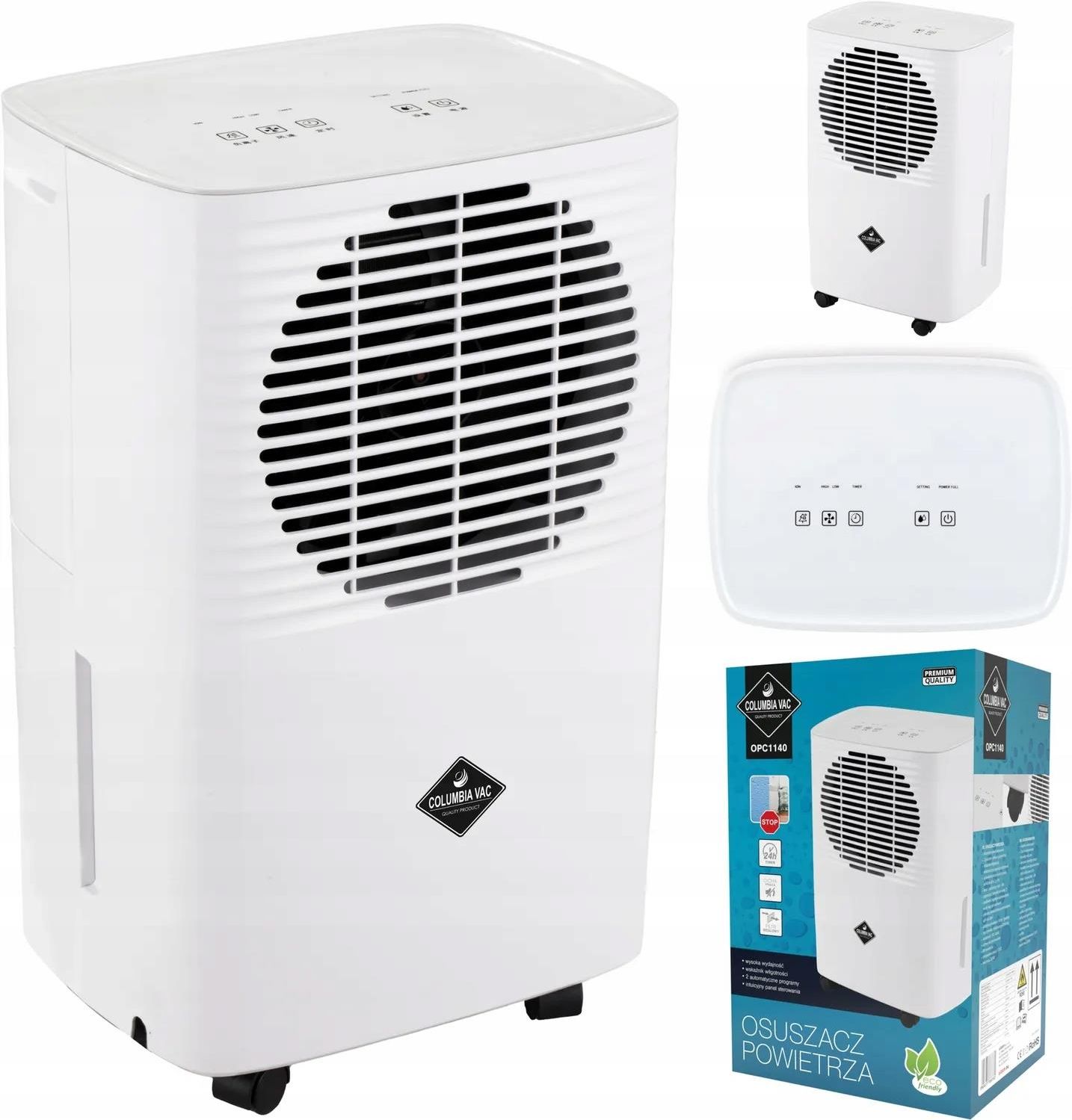 OSUSZACZ POWIETRZA COLUMBIAVAC OPC1140 CICHY 2L 205W DO POMIESZCZEŃ DO 25M² Columbiavac Osuszacz powietrza OPC1140 COLUMBIAVAC cicha praca ≤ 36dB intuicyjny panel sterowania 2 poziomy cyrkulacji powietrza wskaźnik wilgotności - poziom nawilżenia wskazywany kolorami oraz cyfrowo elektroniczna …