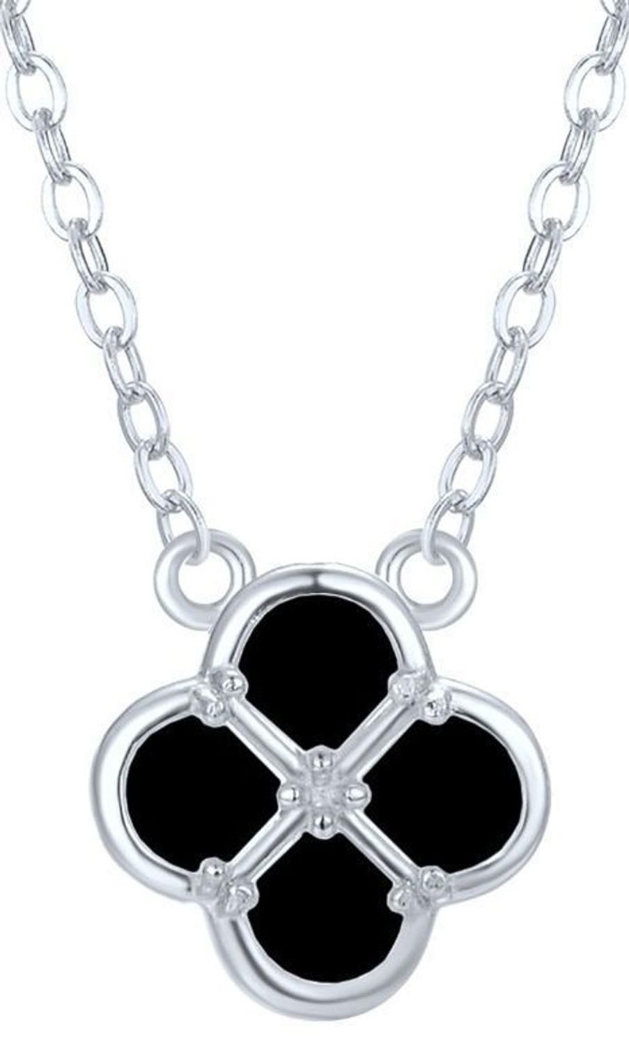 Diament MINET srebrny naszyjnik koniczyna z czarną masą perłową Ag 925 – 50 cm Bydgoszcz