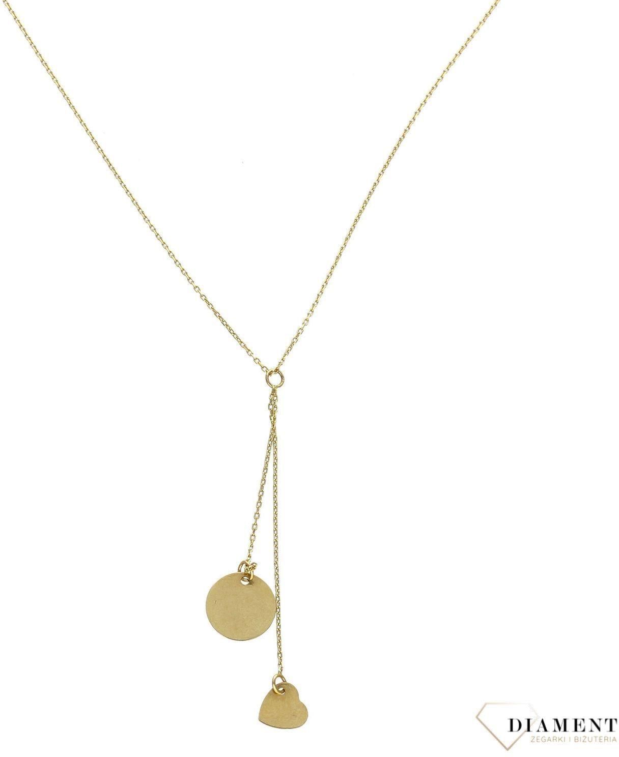 DIAMENT NASZYJNIK ZŁOTA CELEBRYTKA 585 BLASZKA KÓŁECZKO Z SERDUSZKIEM Bydgoszcz