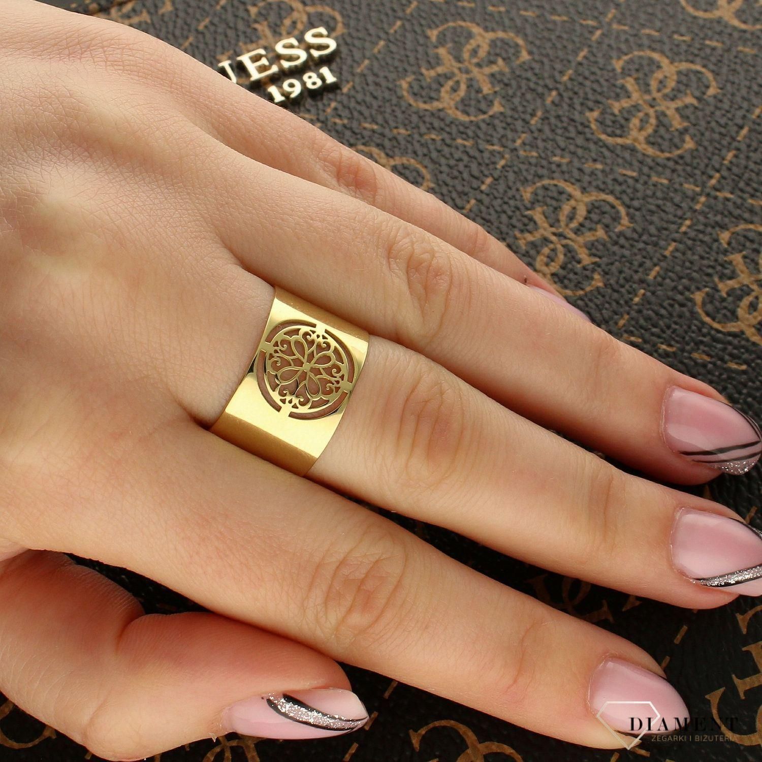 DIAMENT ZŁOTY SZEROKI PIERŚCIONEK Z ORNAMENTOWYM ZDOBIENIEM Bydgoszcz