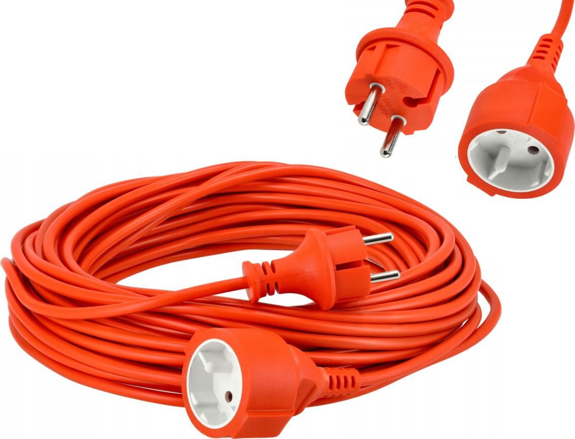 Przedłużacz Ogrodowy Budowlany 30m Zasilający Do Kosiarki Ogrodu 2000W 13A Hit Cenowy Wytrzymały, długi przewód zasilający – niezawodny towarzysz podczas prac w ogrodzie i na budowie. Główne cechy produktu 30 metrów długości – maksymalna swoboda działania w ogrodzie lub na placu budowy Przewód typu H05RN-F 2x1,0 mm² – odporny na ścieranie, wilgoć i warunki zewnętrzne Zasilanie 230V | 13A | 2000W – odpowiednie dla większości elektronarzędzi i kosiarek Brak uziemienia (2-żyłowy przewód) – zgodny z urządzeniami klasy II (podwójnie izolowanymi) Wtyczka IP44 i przewód IP65 – wysoka odporność na kurz i zachlapania Zastosowanie i dla kogo? Dla właścicieli domów i ogrodów – do kosiarek, podkaszarek, odkurzaczy ogrodowych Dla ekip budowlanych i instalatorów – niezawodny na zewnątrz i wewnątrz obiektów Dla działkowców – idealny do podłączenia urządzeń z dala od źródła zasilania Dane techniczne Model: Przedłużacz ogrodowy / budowlany 30m Typ przewodu: H05RN-F 2x1,0 mm² Długość przewodu: 30 metrów Liczba żył: 2 (bez uziemienia) Ilość gniazd: 1x Zasilanie: 220–240V AC Natężenie: 13A Maksymalna moc: 2000W Stopień ochrony przewodu: IP65