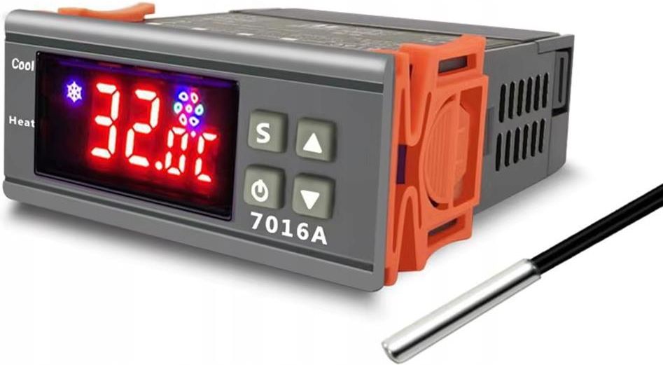 Termostat cyfrowy HW7016A – precyzyjna kontrola temperatury dla Twoich potrzeb! Termostat HW7016A to zaawansowane urządzenie umożliwiające precyzyjne monitorowanie i regulację temperatury w zakresie od -50°C do 110°C. Dzięki dużemu, czytelnemu wyświetlaczowi LCD oraz intuicyjnemu interfejsowi, obsługa jest prosta i wygodna. Termostat nie daje napięcia na wyjściu – załącza obwód! (działa jak przełącznik lampkowy) Główne cechy Szeroki zakres pomiaru: od -50°C do 110°C, z dokładnością ±0,5°C. Funkcja ogrzewania i chłodzenia: możliwość sterowania zarówno urządzeniami grzewczymi, jak i chłodzącymi. Wysoka moc wyjściowa: obsługuje obciążenia do 30A przy zasilaniu 230V, co pozwala na kontrolę urządzeń o mocy do 5000W. Łatwość konfiguracji: intuicyjne ustawienia temperatury docelowej oraz histerezy. Kompaktowe wymiary: około 85 x 75 x 34,5 mm, co umożliwia łatwą integrację z różnymi systemami. Specyfikacja techniczna Zakres pomiaru temperatury: -50°C ~ 110°C Dokładność pomiaru: ±0,5°C Zasilanie: AC 230V Maksymalne obciążenie wyjściowe: 30A (do 6600W) Sensor: NTC (10K3435) z przewodem o długości 1m Temperatura pracy: 0°C ~ 50°C Temperatura przechowywania: -10°C ~ 60°C Materiał obudowy: ABS Zastosowanie Termostat HW7016A idealnie nadaje się do zastosowań w systemach grzewczych i chłodzących, takich jak: Inkubatory Lodówki Akwaria Systemy HVAC Kontrola temperatury w procesach przemysłowych Zawartość zestawu 1 x Termostat cyfrowy HW7016A 1 x Czujnik temperatury NTC (10K3435) z przewodem 1m Instrukcja obsługi w języku polski w wersji elektronicznej. Dlaczego warto wybrać termostat HW7016A? Dzięki wysokiej precyzji pomiaru, szerokiemu zakresowi temperatur oraz możliwości sterowania zarówno ogrzewaniem, jak i chłodzeniem, termostat 7016A stanowi niezawodne rozwiązanie dla wielu aplikacji wymagających dokładnej kontroli temperatury. Uwaga Przed instalacją i użytkowaniem urządzenia należy zapoznać się z instrukcją obsługi oraz przestrzegać wszystkich zaleceń dotyczących bezpieczeństwa.