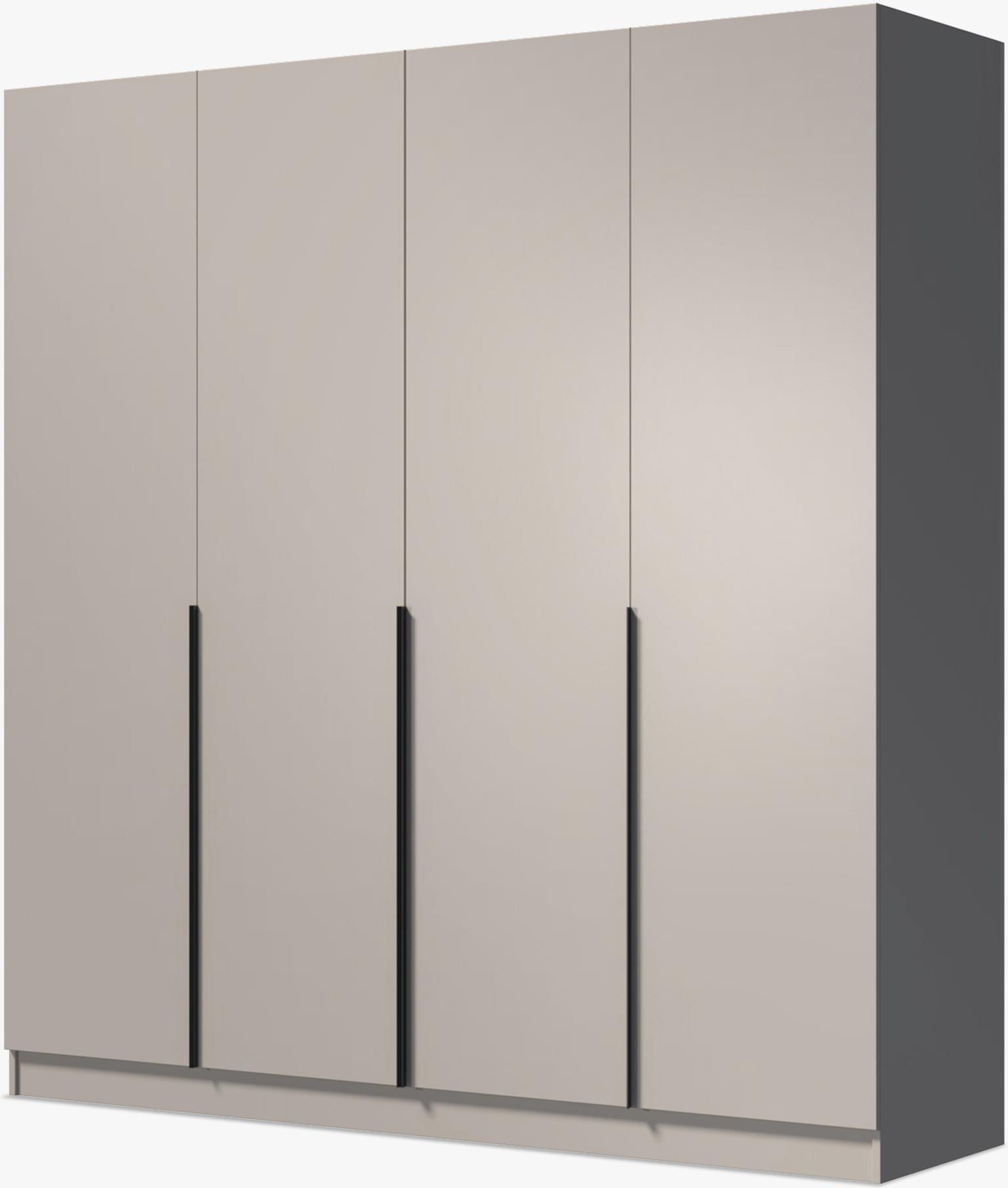 Poranne przygotowania do wyjścia będą przyjemnością z szafą KASZMIR. Za 4-drzwiowym frontem kryje się mnóstwo półek i drążek, które pomogą Ci w organizacji swojej garderoby. Lustro umieszczone na wewnętrznej stronie drzwi będzie Twoim towarzyszem podczas zabawy ze stylizacjami. Szafa sprawdzi się jako samodzielny mebel lub jako część większej garderoby, którą stworzysz z innymi szafami z kolekcji KASZMIR. Szafa zapewnia 12 wnęk na ubrania i dodatki. W pojedynczej szerokiej wnęce przechowasz zapasową pościel. Drążek pozwoli Ci zawiesić wieszaki z okryciami wierzchnimi. Dopuszczalne obciążenie półek wynosi 5 kg. Kojący odcień beżu w Twojej sypialni Kolekcja mebli do sypialni KASZMIR Otocz się łagodnym kolorem kaszmirowego beżu kolekcji KASZMIR. Beżowe, gładkie fronty dodadzą wnętrzu elegancji, tworząc atmosferę sprzyjającą odpoczynkowi po ciężkim dniu. Chłodny odcień beżu to świetna alternatywa dla czystej bieli – wygląda bardziej kojąco i przytulnie. Największą zaletą kolekcji jest możliwość łączenia szaf w dużą garderobę co pozwoli Ci zaplanować przestrzeń tak, jak lubisz. Kolekcja KASZMIR posiada meble, z którymi w kompletny sposób urządzisz sypialnię. Dzięki zróżnicowanej ofercie szaf w kolekcji możesz stworzyć garderobę swoich marzeń w sypialni lub przedpokoju. Czarne wykończenia kontrastują z beżową płytą meblową, nadając bryłom nowoczesnego akcentu. Neutralne kolory wpiszą się w zarówno jasne jak i ciemne wnętrza, dając Ci możliwość zmian w aranżacji Twojej sypialni.