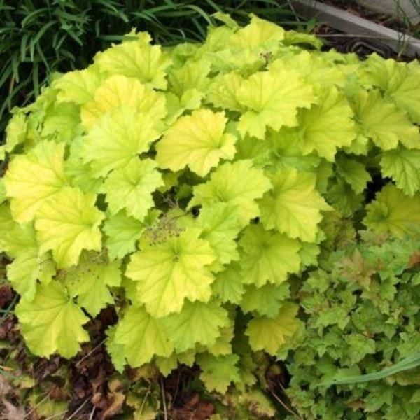 Heuchera 'Guacamole' ozdobna roślina o limonkowych liściach do ogrodu Heuchera 'Guacamole' to wyjątkowa odmiana żurawki, która zachwyca swoim oryginalnym, żółto-zielonym ubarwieniem liści. Jest to roślina o zwartym pokroju i dużych, dekoracyjnych liściach, które zmieniają kolor w miarę starzenia, przechodząc od jasnego, wiosennego zielonego do bardziej intensywnych odcieni żółci i zieleni w pełni sezonu. Heuchera 'Guacamole' dorasta do około 30-40 cm wysokości, co sprawia, że idealnie nadaje się do rabatach bylinowych, ogrodach naturalistycznych oraz jako roślina okrywowa. Kwitnie latem, prezentując drobne, kremowo-białe kwiaty na długich pędach, które dodatkowo przyciągają owady zapylające. Roślina jest odporna na różne warunki atmosferyczne, toleruje zarówno słońce, jak i cień, dzięki czemu sprawdzi się w niemal każdym ogrodzie. Heuchera 'Guacamole' to doskonały wybór do ogrodów, które potrzebują efektownej rośliny o niskiej wysokości i wielu walorach dekoracyjnych. Dzięki swojej odporności na suszę i niskie wymagania glebowe jest łatwa w uprawie i wymaga minimalnej pielęgnacji. Idealna do kompozycji z innymi roślinami bylinowymi, wzdłuż ścieżek czy w donicach na tarasy. Żurawka 'Guacamole'