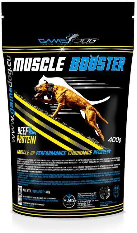 Game Dog Muscle Booster 400g WSKAZANIA: ⇒ Buduje i utrzymuje kondycję u psów sportowych ⇒ Wspiera budowanie masy mięśniowej ⇒ Podnosi siłę, wydajność i wytrzymałość mięśni ⇒ Minimalizuje powysiłkowe uszkodzenia ⇒ Wspomaga regenerację powysiłkową Opakowanie zawiera miarkę GameDog Muscle Booster …