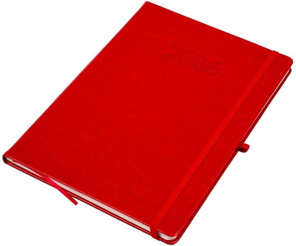 Jazz Kalendarz A4 tygodniowy czerwony 2026 • Jazz: kalendarz książkowy 2026 • format: A4• oprawa: twarda wykonana z wysokiej jakości materiału imitującego skórę• kolor: czerwony• zamykany na gumkę w kolorze czerwonym• gumka na długopis w kolorze czerwonym• zaokrąglone narożniki opraw i stron• dwie …