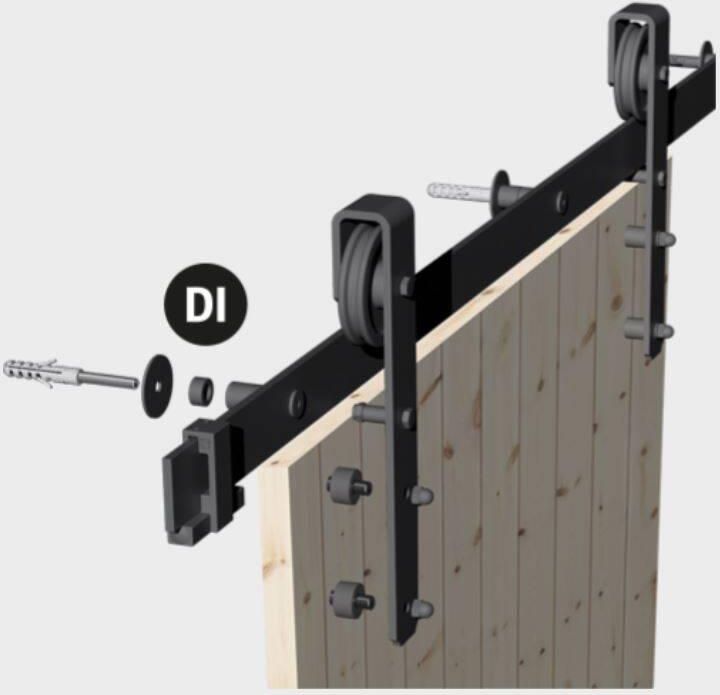 Za pomocą tulei dystansowych zwiększysz dopuszczalną grubość montowanych drzwi przesuwnych z 42 mm do 52 mm. Tuleje montuje się między ścianą a prowadnicą, która jest wtedy bardziej odsunięta od ściany, a tym samym przestrzeń na montaż drzwi zwiększa się.