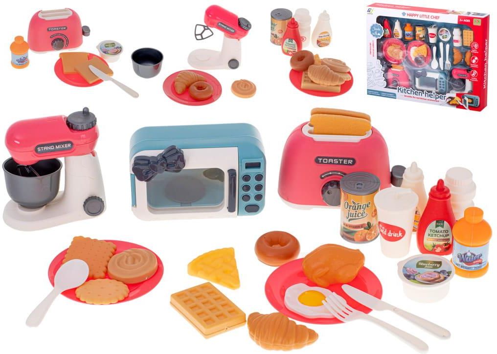 Mikrofalówka toster mikser warzywa akcesoria Zabawkowy toster, mikser i mikrofalówka + wiele innych akcesoriów, które zagwarantują super zabawę! Zabawka nauczy ostrożności w kuchni w przyjemny i bezpieczny sposób. Pobudzi wyobraźnię i rozwinie zdolności manualne. Wym. mikrofalówki: 12.5x7.5x6cm. …