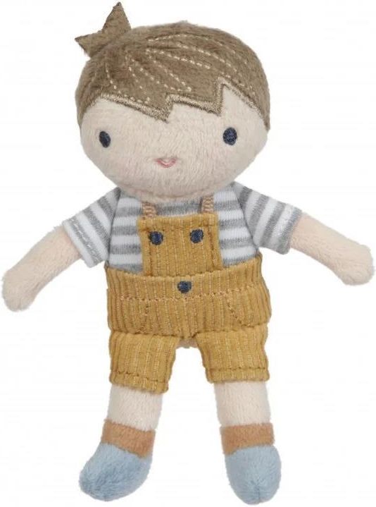 Little Dutch Jim 10cm LD4523 Urocza i przytulna lalka Jim wykonana z miłego i miękkiego materiału. Będzie wspaniałą towarzyszką dziecięcych zabaw i ukochaną przytulanką. Wyglądem przypomina prawdziwego chłopca. Laleczka posiada koszulkę w paski, krótkie spodenki z szelkami w kolorze musztardowym z guziczkami oraz niebieskie buciki. Można ją posadzić. Mała laleczka zmieści się do kieszeni spodni, także zawsze można ją mieć przy sobie na spacerach. Zapakowana w piękne, kartonowe pudełeczko ze sznurkiem będzie wspaniałym prezentem dla każdego chłopca. Rozwijanie umiejętności: kreatywność, wyobraźnia Pielęgnacja: lalkę można prać w pralce w 30 stopniach Wiek: 1+ Wielkość lalki: 10 cm. Wymiary: 10 x 7 x 3,5 cm Opakowanie: kartonowe, zamykane pudełeczko ze sznureczkiem Little Dutch to holenderska firma rodzinna, prowadzona przez małżeństwo, które wkłada całe serce w tworzenie produktów dla najmłodszych. W ofercie marki znajdują się doskonałej jakości tekstylia, produkowane z bawełny organicznej z certyfikatem Oeko-tex, takie jak ręczniki, śpiworki do spania, otulacze, akcesoria do pokoików dziecięcych oraz zabawki sensoryczne dla niemowląt, jak również zabawki, czy pojazdy wytwarzane z drewna. Produkty Little Dutch cechuje spokojna, pastelowa kolorystyka.