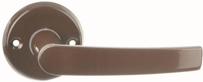 Wewnętrzna klamka drzwiowa na szyldzie okrągłym. Komplet (2 sztuki). Wykończenie: białe / brąz / złote / srebrne.