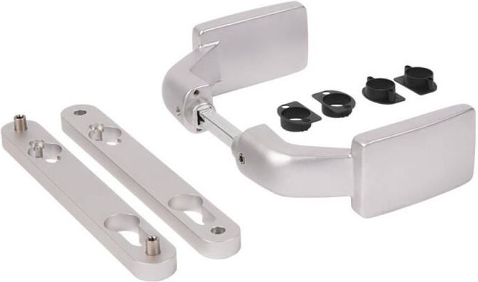 - komplet aluminiowych uchwytów mogących pracować w kombinacjach: obie strony z funkcją klamki / jedna z funkcją klamki, druga zablokowana / obie strony zablokowane - rozstaw 92 mm - trzpień 8 mm - cena za komplet
