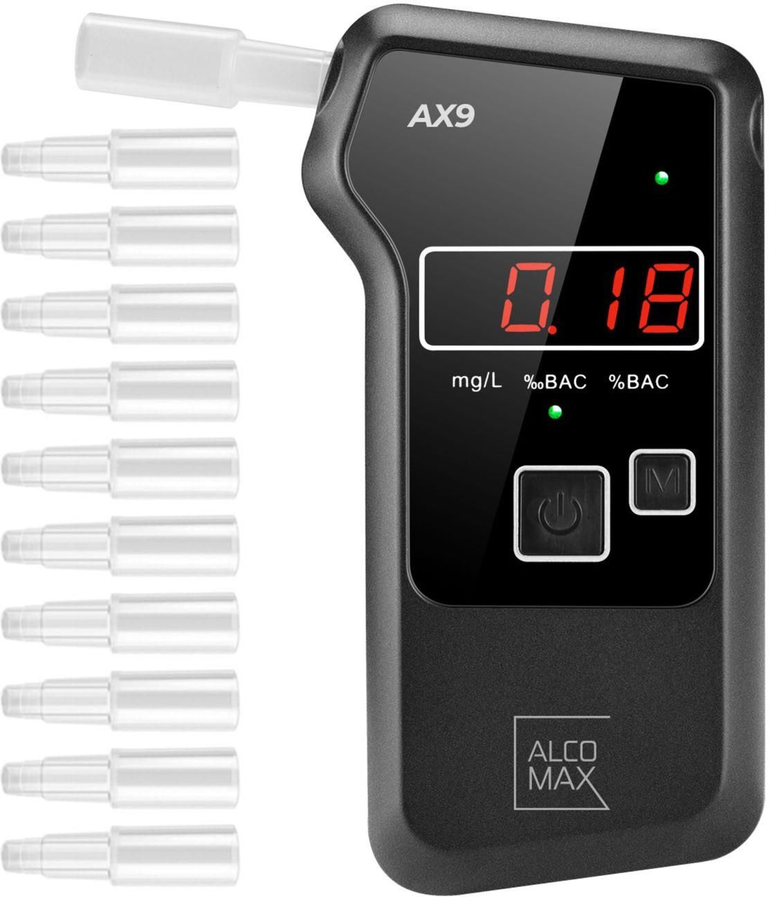 Alkomat AX9 elektrochemiczny z PLATYNĄ pozwala na wykonanie 5000 pomiarów bez kalibracji. Sensor elektrochemiczny Pamięć 20 ostatnich pomiarów Ustniki 10 sztuk Wyświetlacz LCD Gotowy do pracy w 5 sec. Zakres pomiaru od 0 do 2‰ Duża dokładność pomiaru 0,001% BAC Kalibracja: Tak - co 5000 pomiarów Możliwość kalibracji: TAK Możliwość wymiany czujnika: TAK Powiadomienia dźwiękowe - informuje o zakończeniu pomiaru Powiadomienia świetlne - informuje o wyniku Zasilanie : 3x baterie AAA (brak w zestawie) Alkomat AX9 elektrochemiczny z PLATYNĄ Dedykowany użytkownikom indywidualnym. Wyposażony jest w czuły czujnik półprzewodnikowy najnowszej generacji, który zapewnia dokładność pomiaru do 0,01% BAC w zakresie pomiaru od 0 do 2‰ - wynik prezentuje na czytelnym wyświetlaczu. Urządzenie jest lekkie i posiada wytrzymałą obudowę. 6 powodów dla których powinieneś poznać ALKOHOLOMIERZ 1. SENSOR ELEKTROCHEMICZNY Precyzyjny czujnik elektrochemiczny wykorzystuje reakcje platyny na kontakt z cząstkami etanolu, Jest to jedna z najdokładniejszych metod pomiarowych. 2. NAJSZYBSZE DZIAŁANIE Włączenie i przygotowanie do pomiaru zajmuje tylko 5 sekund. 3. DOKŁADNY POMIAR Pomiar jest bardzo dokładny w granicach 0,01 promila. 4. SZEROKI ZAKRES POMIARU Alkomat ma bardzo szeroki zakres pomiaru, bo aż do 5 promili. 5. POWIADOMIENIE ŚWIETLNE Specjalne znaki świetlne poinformują cię gdy pomiar wykaże przekroczenie dopuszczalnego poziomu alkoholu w wydychanym powietrzu oraz gdy bateria będzie rozładowana. 6. POWIADOMIENIE DŹWIĘKOWE Specjalna funkcja informuje dźwiękowo o nieudanej próbie, przekroczeniu dopuszczalnego progu zawartości alkoholu oraz przy rozładowaniu baterii. SPECYFIKACJA Dokładność: 0,001% BAC Ilość pomiarów bez kalibracji: 5000 Zakres: 0 do 2‰ Wyświetlacz: LCD podświetlany Zasilanie: 3xAAA (brak w zestawie) Powiadomienia dźwiękowe: Tak Przygotowanie do użytku: 5s Kalibracja: Tak - co 500 pomiarów Sensor: Półprzewodnikowy Czujnik przepływu powietrza: Tak Ilość ustników w zestawie: 10