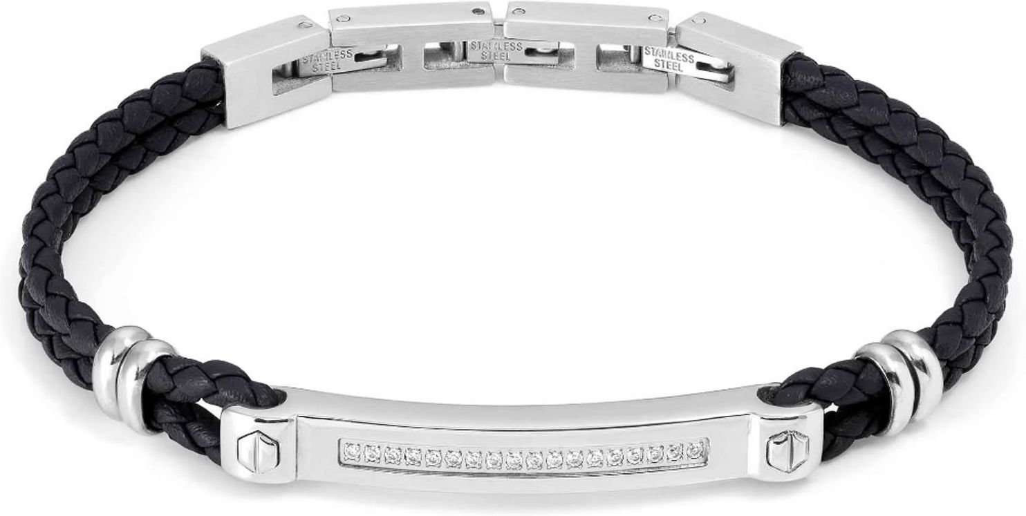 Nomination Bransoletka męska Italy Manvision czarna skórzana z białymi cyrkoniami 133001 001 Bydgoszcz