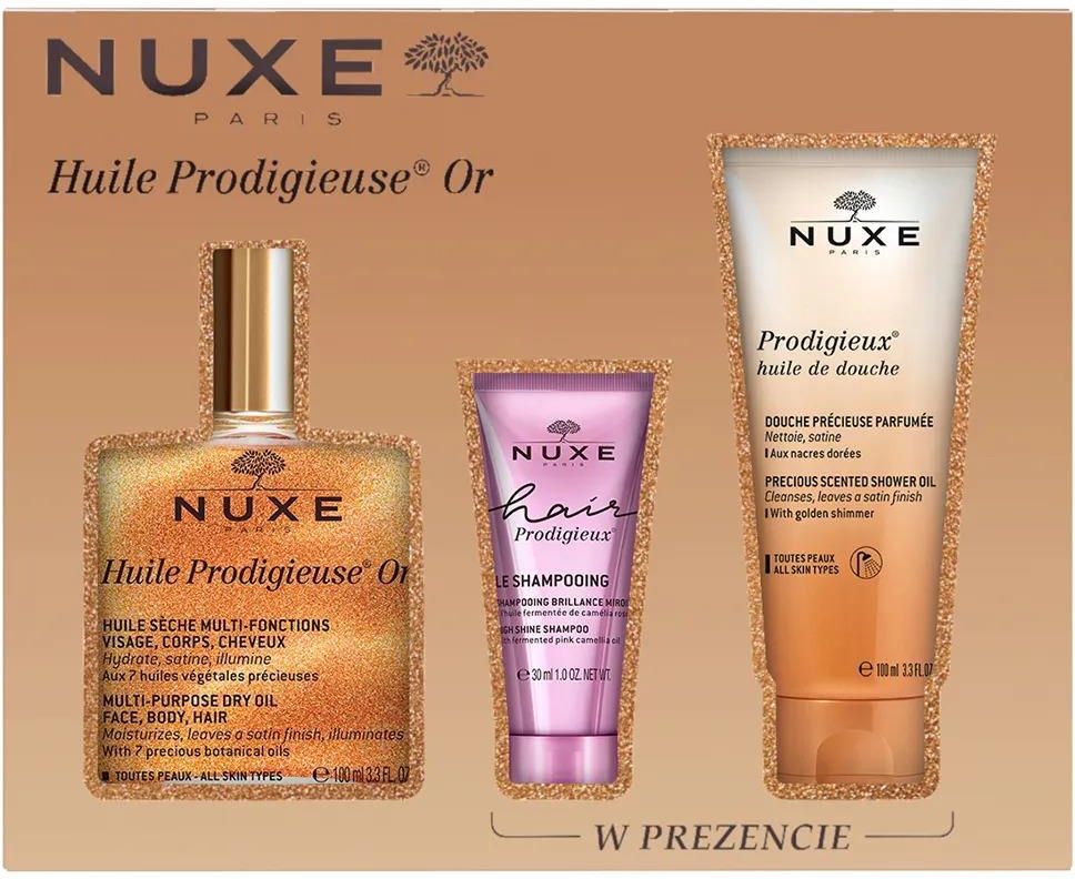 Nuxe Zestaw Huile Prodigieuse Or Suchy olejek z drobinkami 100ml + Hair Prodigieux Szampon 30ml + Prodigieux Olejek pod prysznic 100ml Bydgoszcz