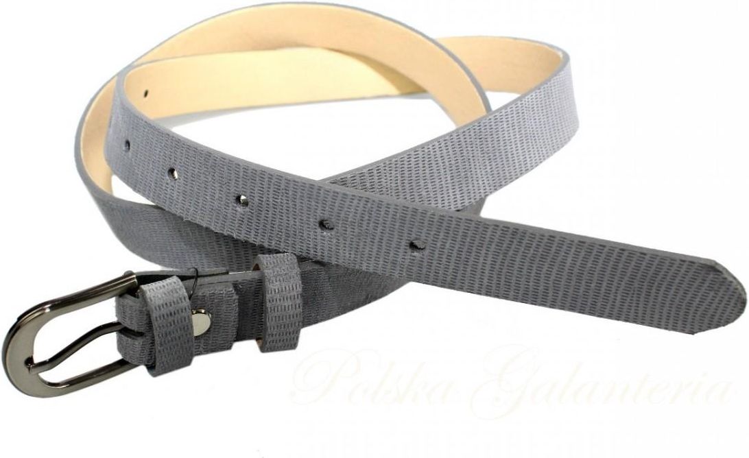 Pasek Skórzany PAS-MAX (PL) Damski "POŁYSKUJĄCA DROBNA ŁUSKA" Skóra Licowa 25 mm POPIELATY Pasek skórzany wykonany ze 100% bydlęcej skóry. Produkcja pasków odbywa się w Polsce z użyciem skór z polskich garbarni. Z doświadczenia własnego oraz klientów wiadomo, że paski tego rodzaju wytrzymują …