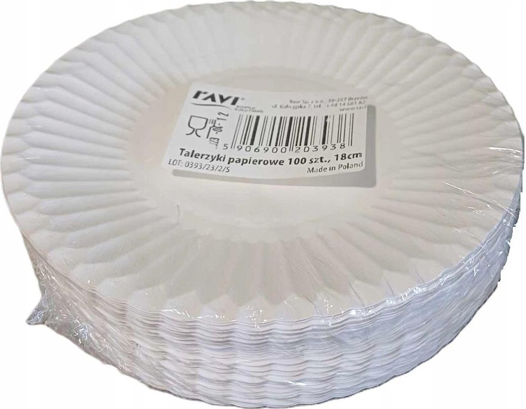 Ravi Talerzyki Jednorazowe Deserowe Papierowe Białe Średnica 18cm 100 Sztuk 203938 Bydgoszcz