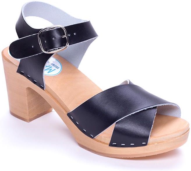Sandały na koreczku 7.5 cm skóra bydlęca koloru czarnego, drewno - topola