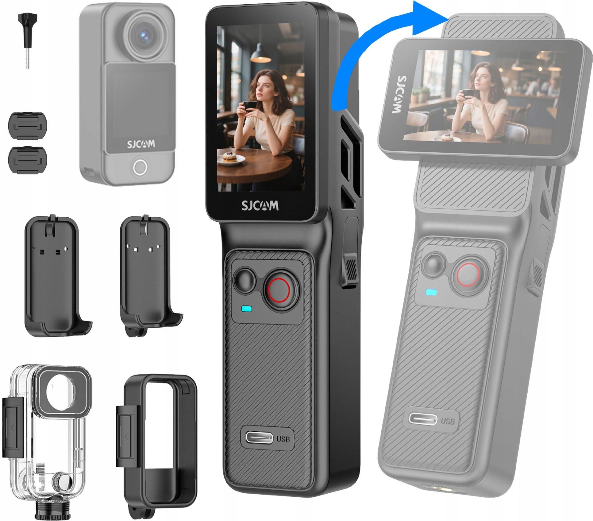 Innowacyjna Mini Kamera Sportowa SJCAM C400 Wi-Fi I Bluetooth I 7h SJCAM C400 to kamera, która łączy mobilność z możliwościami profesjonalnego sprzętu, kręci w 4K, ma obracany ekran i wyjątkowo długi czas pracy. Dzięki specjalnemu uchwytowi z podglądem i pilotem nagrywanie staje się innowacyjne. Parametry Rozdzielczość wideo: 4K@30fps, 2K@60/30fps, 1080p@120/60/30fps, 720p@120/60fps Rozdzielczość zdjęć: do 16 MP Obiektyw: 154° FOV, f/2.0 Stabilizacja: 6‑osiowy gyro + korekcja horyzontu Ekran: 1.3″ + 2.29″ dotykowy, obracany Connect (Wi‑Fi / USB‑C): Dual‑band Wi‑Fi, live stream, webcam Zasilanie: 1250 mAh + 3000 mAh uchwyt Pamięć: microSD do 512 GB Wodoodporność: do 30 m (z obudową) Waga / Wymiary: 54 g (bez) / 189 g (z uchwytem); rozmiary zgodnie z opisem WiFi: TAK WEBCAM: TAK ZOOM: 8x SLOW MOTION: TAK ISO: 100-3200 USB: (USB-C do ładowania i transmisji) Typ: Akumulator litowo-jonowy Pojemność: 1250 mAh (wbudowany) + 3000 mAh (uchwyt z dodatkową baterią) Napięcie: 3,8 V Energia: 4,75 Wh (moduł główny), 11,4 Wh (uchwyt z powerbankiem) Czas pracy na baterii: Do 437 minut (7h) przy nagrywaniu w 4K 30 fps (z wykorzystaniem uchwytu z dodatkową baterią oraz baterii wbudowanej w kamerę) Waga: 189g / 54g Bezprzewodowa obsługa Dzięki łączności Bluetooth zyskujesz pełną kontrolę nad kamerą. Monitoruj obraz w czasie rzeczywistym i steruj zdalnie, bez kabli, bez problemu. Odepnij kamerę, uchwyt działa jak pilot z ekranem. Pełna kontrola i podgląd na żywo, bez dotykania kamery. Zaawansowany obrotowy ekran Obracany ekran całkowicie zmienia sposób korzystania z kamery. Wystarczy go przekręcić, aby automatycznie włączyć urządzenie i cieszyć się doskonałym podglądem, niezależnie od tego, czy nagrywasz w poziomie, czy w pionie. Mała kamera, wielkie wspomnienia Kompaktowa obudowa, SUPER JAKOŚĆ 4K... Twoja kreatywność nie zna granic. Zamontuj ją gdzie chcesz, zabierz dokądkolwiek zechcesz. Duże dwa DOTYKOWE ekrany Kamera C400 oferuje dotykowy 2,29-calowy wyświetlacz i intuicyjny interfejs, zapewniając wygodną i responsywną obsługę w każdej sytuacji. Dodatkowo posiada również dotykowy ekran z przodu / dual screen Uchwyć każdy detal w 4K Ta kamera sportowa nagrywa w jakości 4K, oddając każdy moment z niezwykłą szczegółowością i intensywnymi kolorami. Pewna stabilizacja Dzięki ulepszonemu algorytmowi Steady Motion V1.0 Twoje nagrania będą zawsze płynne i wyraźne, nawet w ruchu. Odkryj więcej inspirujących funkcji Wszechstronne funkcje kamery C400 pomogą Ci uchwycić zachwycające ujęcia w każdej sytuacji, od podróży po codzienne wyjścia. Stabilizacja horyzontu 45 Uchwyć każdą emocję, od salt w powietrzu po ostre zakręty na motocyklu. C400 stabilizuje obraz względem horyzontu, zapewniając wyjątkowo płynne nagrania. Bateria na cały dzień Mimo kompaktowych rozmiarów, C400 umożliwia aż do 7 godzin nagrywania w 4K. Rejestruj wszystko, od świtu do zmierzchu. Uwaga: 7h pracy dostępne jest z dołączanym kontrolerem ręcznym (znajduję się w zestawie z kamerą). Swobodne ujęcia z perspektywy pierwszej osoby Wystarczy zamontować lub przypiąć miniaturową SJCAM C400, by uchwycić zachwycające ujęcia. To idealna kamera sportowa do vlogów i codziennych przygód. W zestawie z kamerą: magnetyczny uchwyt na szyję. Daje to taki efekt jak na zdjęciu. Transmisja na żywo - Wi-Fi C400 obsługuje livestreaming, udostępniaj obraz w czasie rzeczywistym bezpośrednio do sieci, dzięki Wi-Fi Kamera internetowa - WEBCAM C400 działa także jako kamera internetowa (podłącz USB), idealna do wideokonferencji, streamingu i rozmów online. *Statyw widoczny na zdjęciu nie jest w podstawowym zestawie z kamerą Tryby Video Video Time lapse video Slow motion Car mode Loop recording Pre record Delay record Motion detection W zestawie Kamera C400 Kontroler ręczny (uchwyt/pilot/bateria) Wodoodporna obudowa x1 (do 30 m) Mocowanie podstawy x1 Montaże ramy (frame mount) Mocowania zakrzywione i płaskie (x2) Klips do tylnej podstawy x1 Klips tylny x1 Smycz x1 Adapter x1 Śruba montażowa x1 Naklejki samoprzylepne (3M) x2 Kabel USB‑C x1 Ściereczka do czyszczenia x1