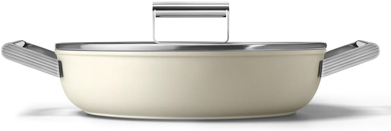 Głęboka patelnia 28 cm SMEG DPF2812CRM Kremowy 50's Style Wyprodukowany we Włoszech, z powłoką ceramiczną wolną od PFAS, łączy w sobie wszechstronność i elegancję. Dzięki swojemu kształtowi i pojemności idealnie sprawdza się nie tylko na płycie, ale również podczas pieczenia w piekarniku. …