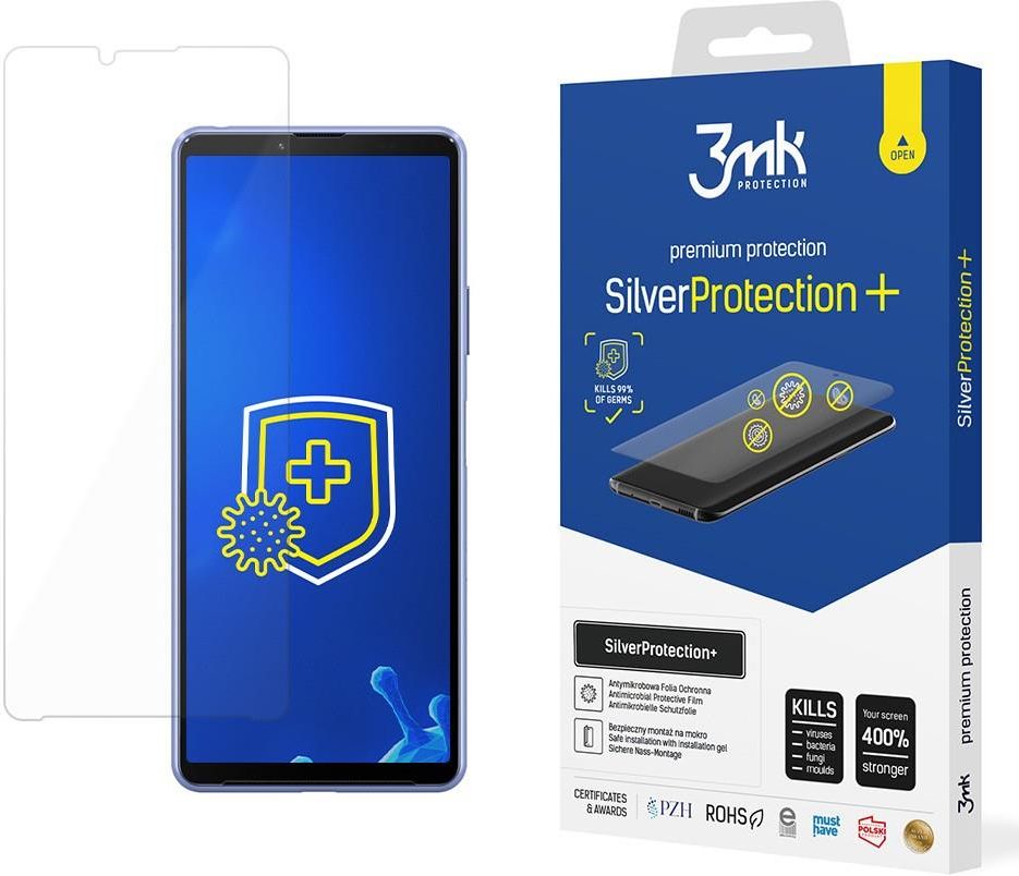 Antymikrobowa folia ochronna 3MK Silver Protect+ Sony Xperia 10 III 5G Antymikrobowa folia ochronna 3MK Silver Protect+ Sony Xperia 10 III 5G SilverProtection+ Dba o Ciebie i Twój smartfon. Powłoka antymikrobowa zabija 99% bakterii, wirusów, grzybów i pleśni. Warstwa przeciwuderzeniowa wzmacnia wyświetlacz o 400%. Antymikrobowa Czy wiesz, że srebro ma aż 6000 lat doświadczenia w eliminowaniu drobnoustrojów? Sięgali po nie już starożytni, sięgneliśmy i my! Folię SilverProtection+ wyposażyliśmy w powłokę antymikrobową opartą o nanocząsteczki srebra. To jedyne zabezpieczenie ekranu, które dba jednocześnie o Twoje bezpieczeństwo i zabija 99% znanych wirusów, bakterii, grzybów i pleśni. Powłoka działa przez 24 godziny, 7 dni w tygodniu. Stoi na straży pełnego bezpieczeństwa nawet wtedy, gdy nie możesz zadbać o właściwą dezynfekcję smartfona. Czy wiesz, że na ekranie telefonu komórkowego gromadzi się nawet 300 razy więcej bakterii niż w toalecie publicznej? Czy wiesz, że ekran smartfona dotykasz ponad 2000 razy dziennie i przenosisz na niego potencjalnie niebezpieczne drobnoustroje? Na ekranie gromadzi się też Twój naskórek, pot, serum i resztki makijażu. Ciepło wytwarzane przez urządzenie stwarza doskonałe warunki dla rozwoju wirusów, bakterii i grzybów. Czy wiesz, że badania naukowe potwierdzają możliwość wymiany bakterii patogennych pomiędzy osobami poprzez używanie tego samego telefonu? Montowana na mokro SilverProtection+ to przełom w montażu. Tak łatwo jeszcze nie było! Folię zaaplikujesz przy użyciu specjalnego, w 100% bezpiecznego dla wyświetlacza żelu, który dołączamy do zestawu. Pęcherzyki powietrza i drobinki kurzu? Zapomnij! Montaż na mokro gwarantuje Ci doskonały efekt i nie wymaga wprawy. Wystarczy trochę czasu - żel odparuje i finalny efekt zobaczysz po ok. 24 godzinach. Zwiększona wytrzymałość SilverProtection+ wzmacnia ekran smartfona aż o 400%. Niewiarygodne, prawda? Wielowarstwową strukturę folii tworzy między innymi podkład antyuderzeniowy, który minimalizuje ryzyko uszkodzenia telefonu. Wymiana wyświetlacza bywa kosztowna i czasochłonna. Oszczędź sobie tego. Komfortowa Bez zbędnych wstępów - w SilverProtection+ połączyliśmy to, co ważne. Folia jest tak elastyczna, że ściśle i trwale przylega nawet do najbardziej zakrzywionych wyświetlaczy. Palec sunie po niej jak po szkle hartowanym! Do tego wisienka na torcie: wysokiej jakości warstwa oleofobowa, która ułatwia pielęgnację. Samoregenerująca Aby wydłużyć żywotność folii, zastosowaliśmy powłokę Self-Heal™. Oznacza to, że SilverProtection+ sama naprawia niewielkie uszkodzenia czy zarysowania powstałe podczas użytkowania telefonu. Self-Heal™ sprawia, że możesz cieszyć się idealnie gładką powierzchnią folii jeszcze dłużej! PZH Eksperyment badawczy dscout pokazał, że przeciętny użytkownik trzyma telefon w dłoni niemal 2,5 godziny dziennie. SilverProtection+ posiada atest Państwowego Zakładu Higieny, co gwarantuje, że jest wolny od substancji szkodliwych i bezpieczny dla zdrowia - niezależnie od tego, ile czasu z telefonem spędzasz. ROHS Zabezpieczając telefony, mamy na uwadze troskę o planetę. SilverProtection+ przeszedł pozytywnie certyfikację RoHS w niezależnym laboratorium - oznacza to, że jest przyjazny środowisku i mieści się w ścisłych unijnych dyrektywach dotyczących zawartości metali ciężkich i niebezpiecznych substancji (m.in. ołowiu, rtęci czy kadmu). Skład zestawu: 1 szt. SilverProtection+ (przód) raszelka żel montażowy CleaningSet 5903108386944 3MK1842