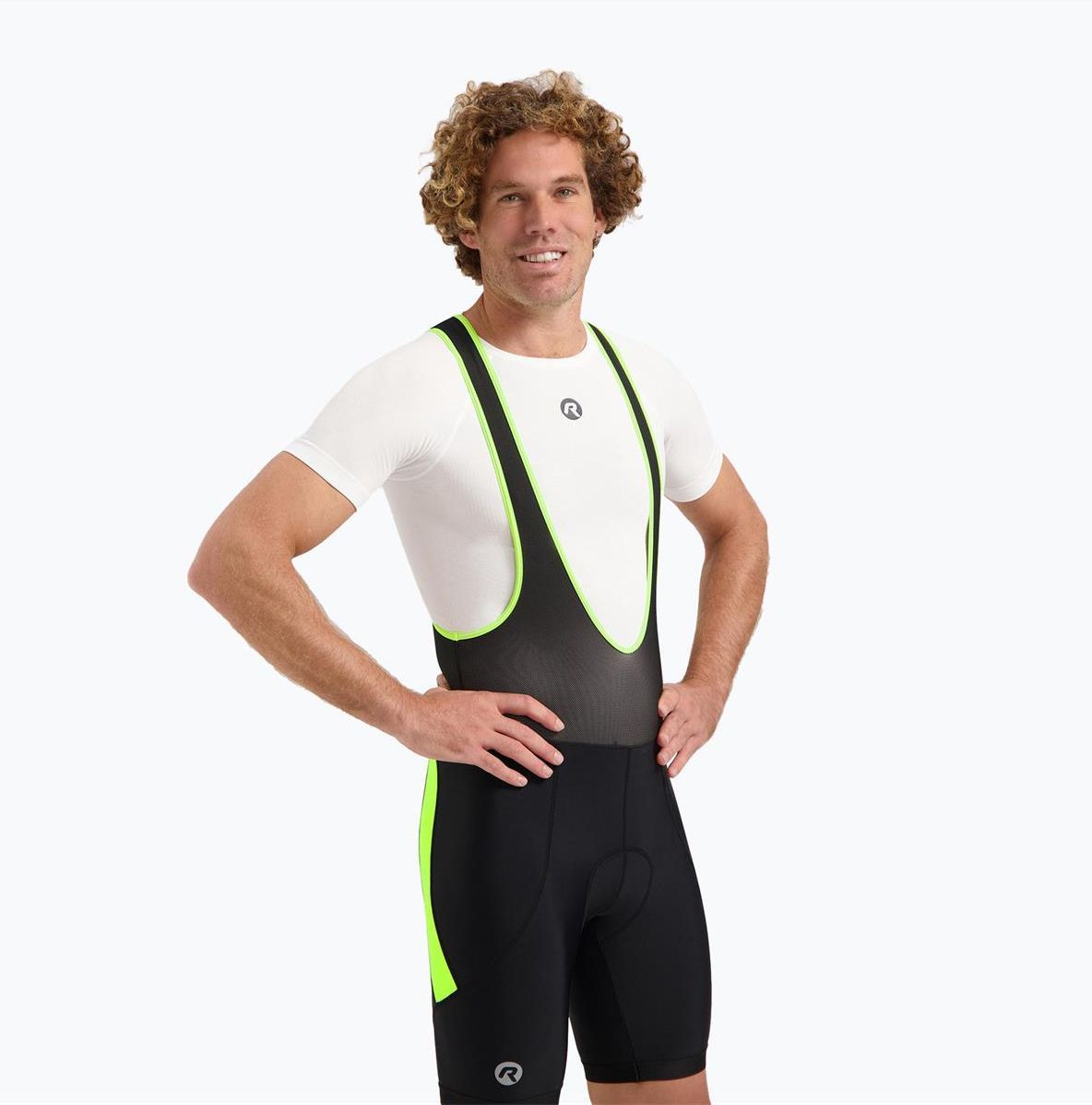 Spodenki rowerowe męskie Rogelli Core Bib Short black/fluor yellow L Rogelli CORE COLORED - spodenki rowerowe wkładką Spodenki rowerowe Core dla mężczyzn są idealne dla początkujących rowerzystów, którzy szukają wygody i funkcjonalności podczas krótszych przejażdżek. Spodnie o kroju Race Fit, który …