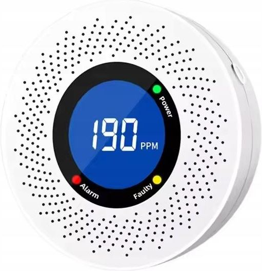 Czujnik czadu tlenku węgla i dymu 2w1 CO detektor LCD Alarm dźwięk Czujnik czadu i dymu detektor tlenku węgla ZAM certyfikowany bezpieczny to urządzenie, które łączy w sobie dwa niezależne czujniki: czujnik dymu i czujnik tlenku węgla (czadu), dzięki czemu umożliwia ochronę zarówno przed pożarem, jak i wysokim stężeniem tlenku węgla. Został wyposażony w głośny alarm dźwiękowy (85dB), alarm świetlny, a dodatkowo w zależności od rodzaju zagrożenia, urządzenie wydaje komunikaty głosowe w języku angielskim. Czujnik można zamontować na suficie, na ścianie lub postawić na półce. Posiada system automatycznej kontroli, dzięki któremu może zasygnalizować niski poziom baterii, nieprawidłowe działanie czujnika oraz koniec żywotności czujnika elektrochemicznego. Jest zasilany za pomocą uniwersalnych baterii AA (3 sztuki). Cechy produktu Głośna sygnalizacja - alarm dźwiękowy o sile 85 dB!!! Technologia elektrochemiczna - bardzo precyzyjny sensor Sygnalizacja niskiego poziomu baterii - krótki sygnał dźwiękowy, co 30 sekund migająca czerwona dioda LED plus komunikat głosowy "Low Battery" Sygnalizacja nieprawidłowego działania - krótki sygnał dźwiękowy plus co 30 sekund zaświeci się czerwona dioda LED Sygnalizacja końca działania czujnika elektrochemicznego - krótki sygnał dźwiękowy co 30 sekund. Zasilany bateriami - 3x AA (brak w zestawie) Kompaktowy, przenośny rozmiar - jest bardzo wygodny i poręczny podczas codziennego użytku Bardzo łatwy w obsłudze - za pomocą przycisku Test/Reset 3 sposoby montażu - można powiesić go na suficie, na ścianie lub postawić Specyfikacja Czujność wykrywania dymu: 0.1%-9.9% db/m Stężenie wykrywania tlenku węgla: 000-999PPM Alarm: Tak (wizualny, dźwiękowy, głosowy) Głośność dźwięku: 85 db Rozmiar: 103 x 103 x 36 (mm) Zawartość opakowania 1x Czujnik czadu (tlenku węgla) i dymu