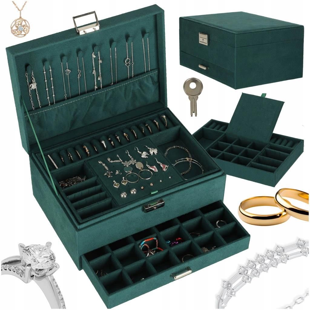 DUŻA SZKATUŁKA ORGANIZER NA BIŻUTERIĘ BUTELKOWA ZIELEŃ Elegancki kuferek na biżuterię pomoże Ci w uporządkowaniu i zabezpieczeniu przed zniszczeniem wszystkich Twoich pierścionków, kolczyków, naszyjników oraz zegarków, a dodatkowo będzie piękną ozdobą Twojego domu! TO MUSISZ WIEDZIEĆ O SZKATUŁCE NA …