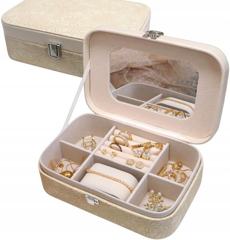 Szkatułka na biżuterię, etui, organizer, pudełko kremowa koronka PD157K Bydgoszcz
